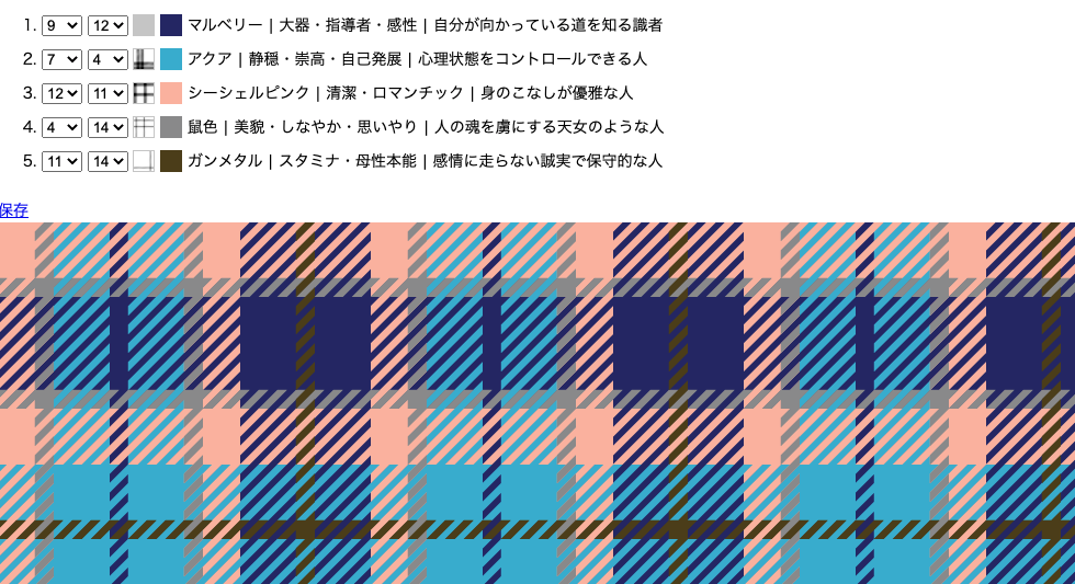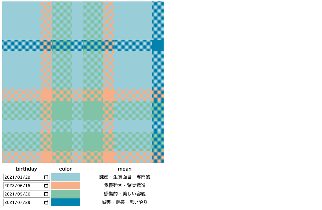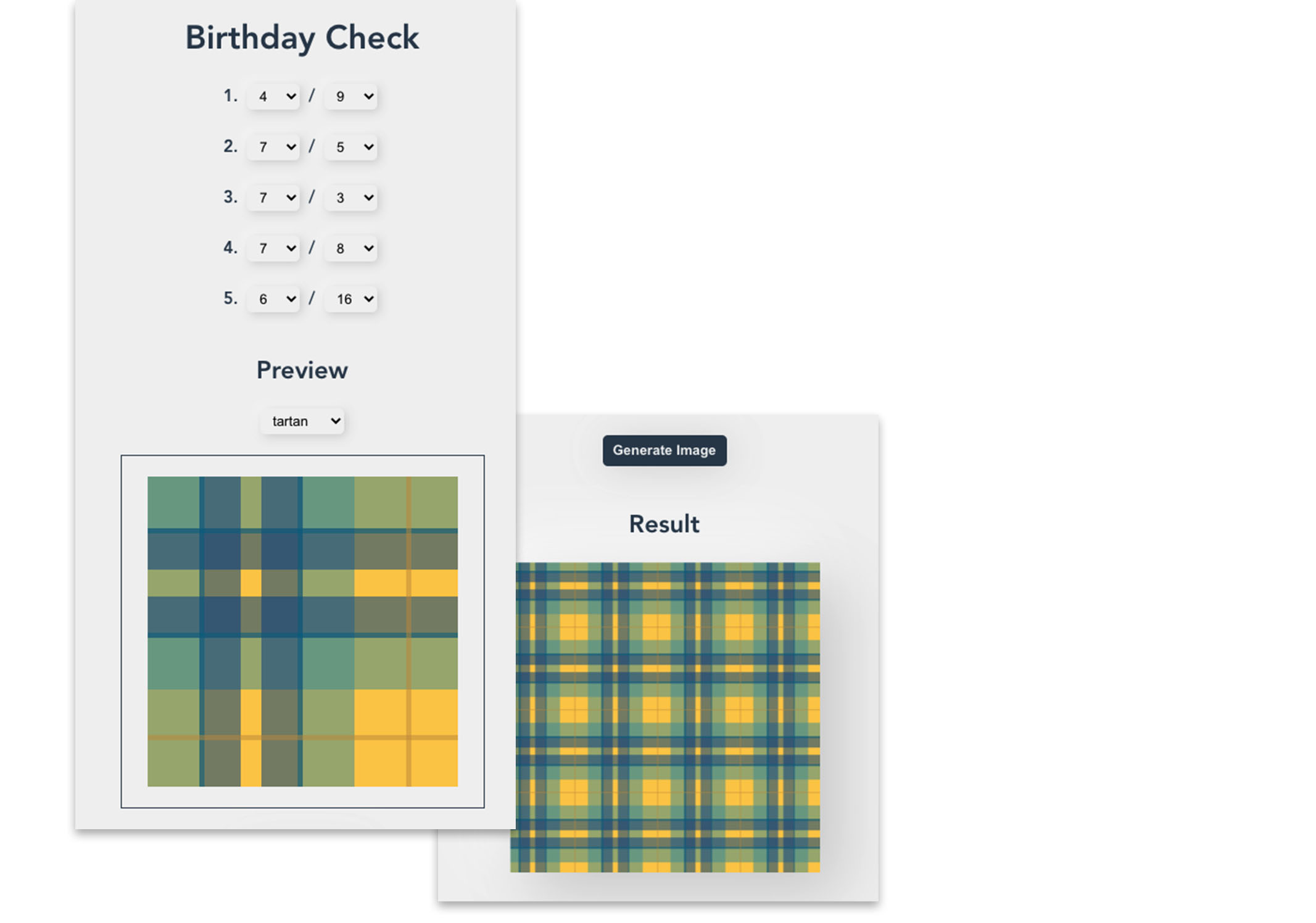 入力したいくつかの誕生日からオリジナルのタータンチェックが作れて、