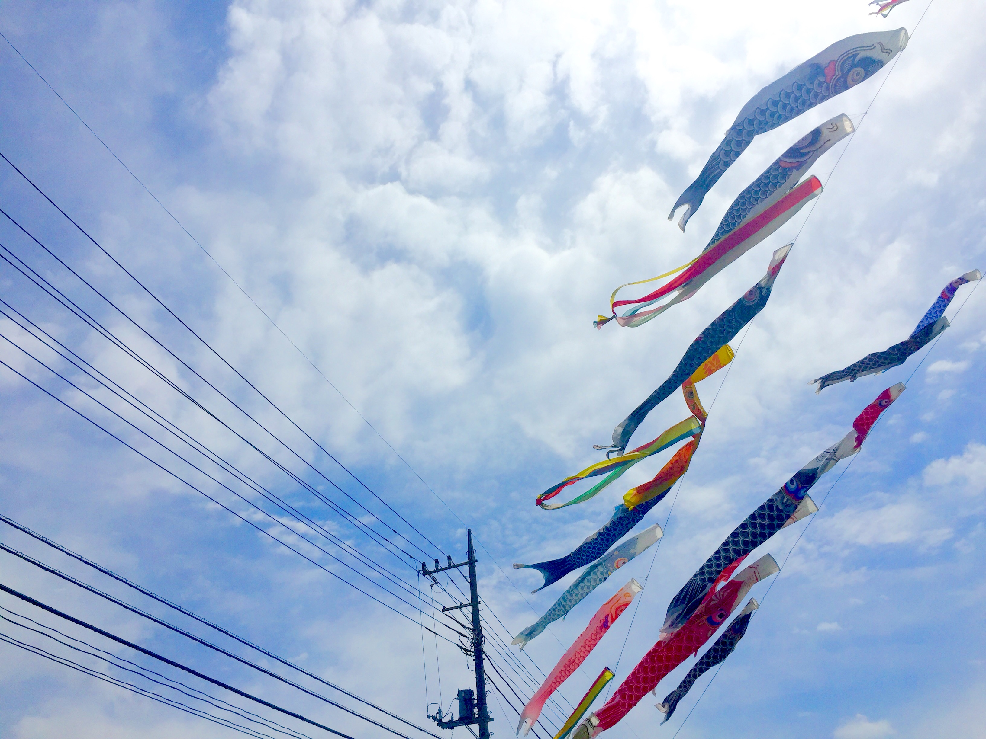 これ、本当は色とりどりのこいのぼりが、爽やかな青空で泳いでいるのです。
