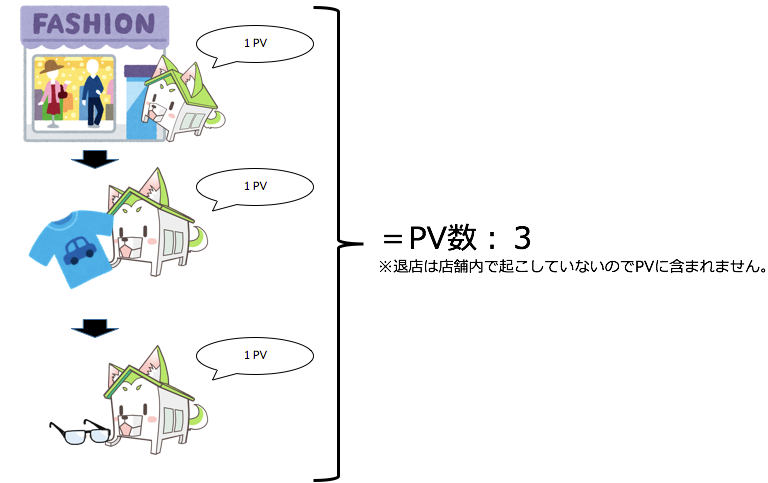 PVとは期間内に店舗内で起こした行動の数です。