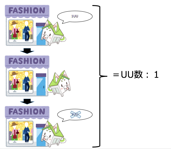 この後日、すまイヌ君(イエタテ公式キャラクター)が何度同じ店に来店しても、UU数は1のままです。