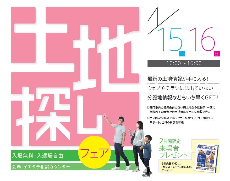 「イエタテ相談カウンター」で、土地を探す新築希望のお客様のために「土地探しフェア」を開催します。